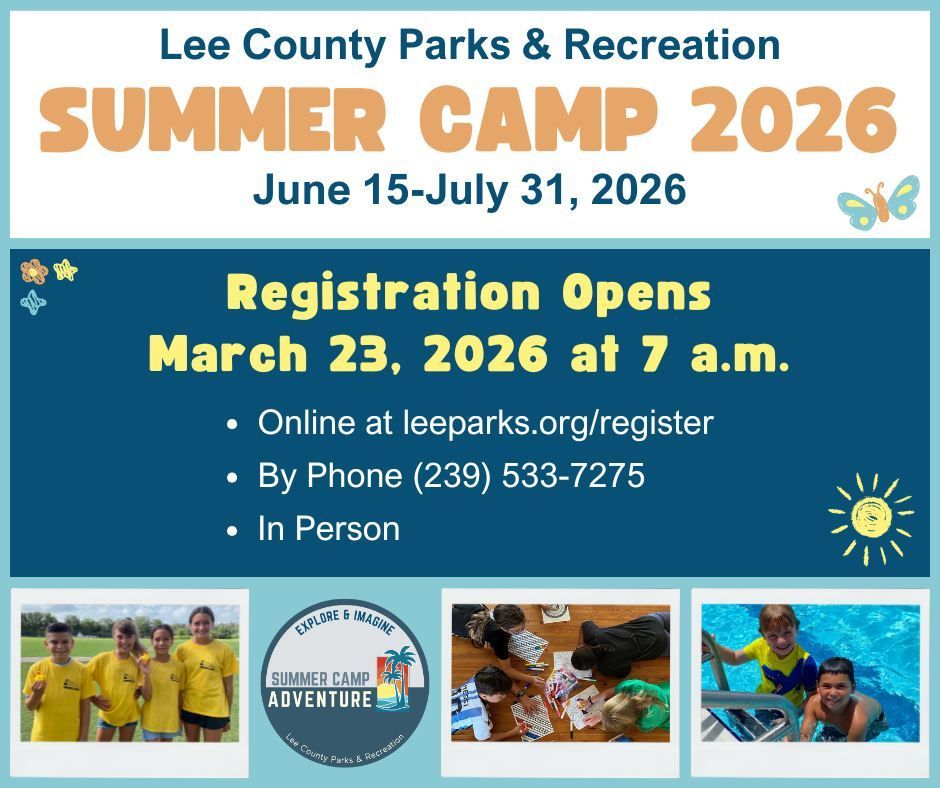 Lee County Parks & Recreation Summer Camp registration opens March 23, 2026 at 7 a.m.