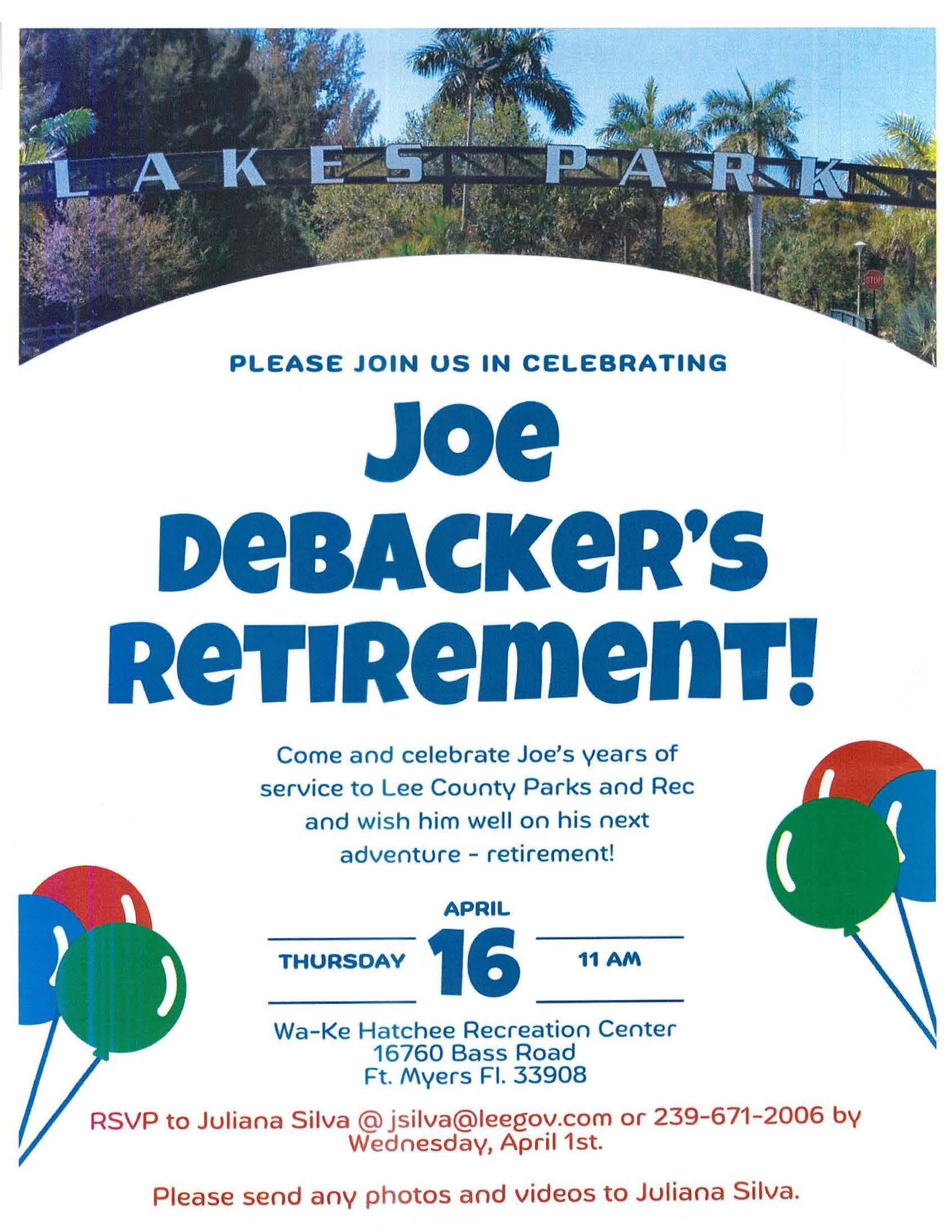Also, condolences to longtime Board member and now Advisory Board member Marsha Asp. Marsha’s husband, Tony, passed away last week. He was always in attendance at our events and a regular at the Farmer’s Market as well as a donor. He loved Lakes Park, and his smiling face will be missed!