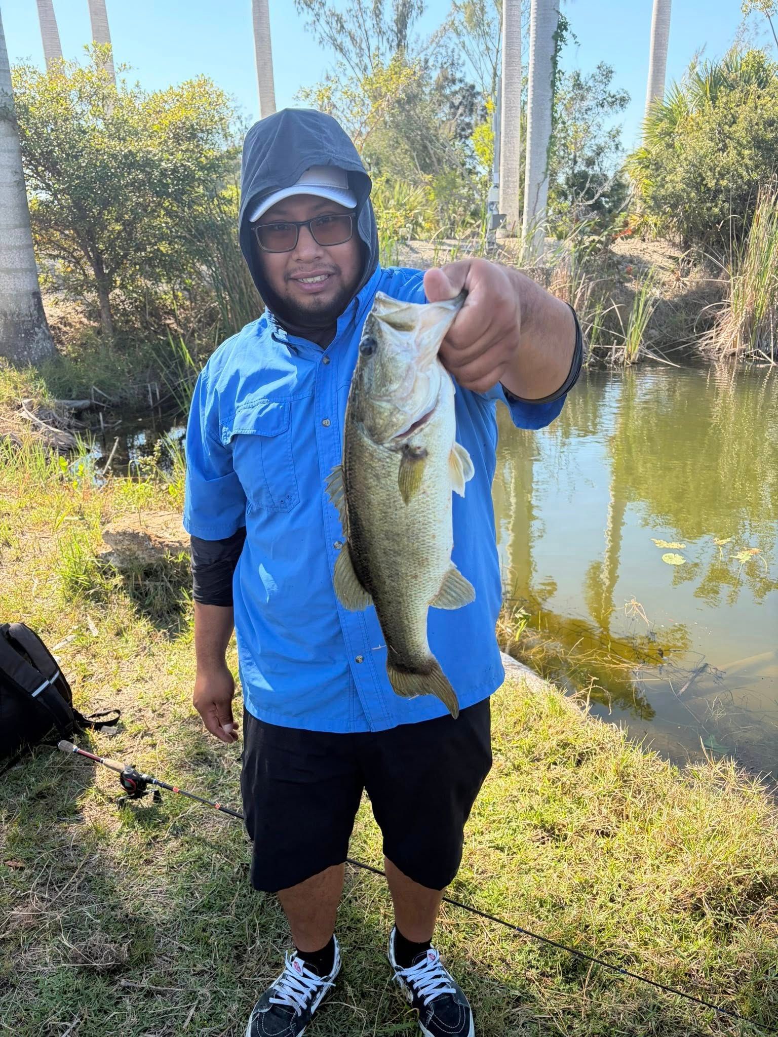 John is one happy fisherman after catching this Largemouth Bass at Lakes Park!