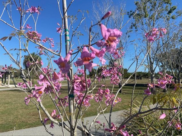 Below is the Golden Tabebuia and Queen’s Wreath.
