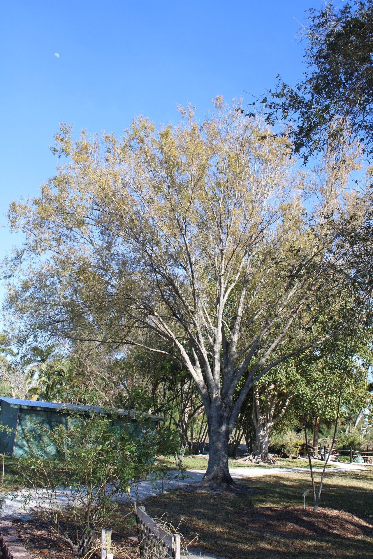 Quercus laurifolia is a medium-sized semi-evergreen tree with a large, dense, oval crown. It is native to the southeastern and south-central United States from Virginia to Florida and west to Texas. The Laurel Oak grows rapidly (65–80 feet) and matures in about 50 years. The leaves of the laurel oaks are smooth, narrow, shiny, dark green on top, and a brighter green underneath. The margins of the leaves are either smooth or irregularly lobed. The trees will flower as the new leaves start to emerge; acorn production is often heavy, enhancing the value for wildlife.