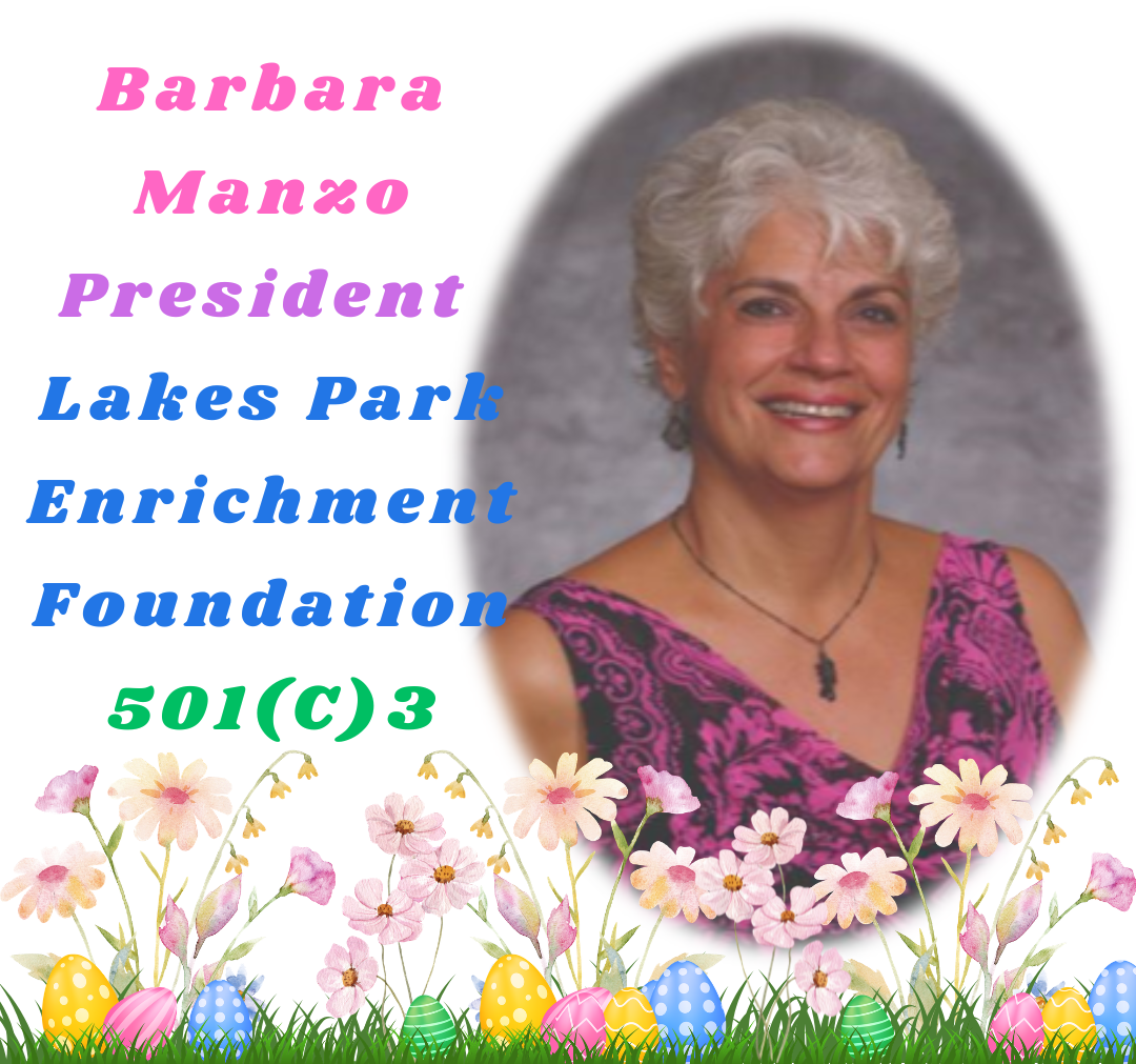 “THE MISSION of Lakes Park Enrichment Foundation is to enhance the beauty and experience of Lakes Park.”— Barbara Manzo, President.