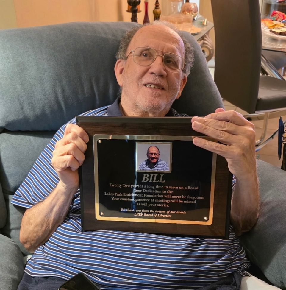 Bill is retiring after 22 years on our Foundation Board. Bill was one of the original founding members. He has been there through thick and thin. Bill stuck with us during COVID when we saw our board reduced to four members from fifteen. Not to mention the loss of our executive director at the same time! We could always count on Bill to be at every Board meeting, ask questions, and vote as well as entertain us with his stories. For fourteen years, Bill would always man the booth at the annual Scarecrows event, hand out tickets, and count votes at the end of the night. Bill helped us raise money with his generous donations.