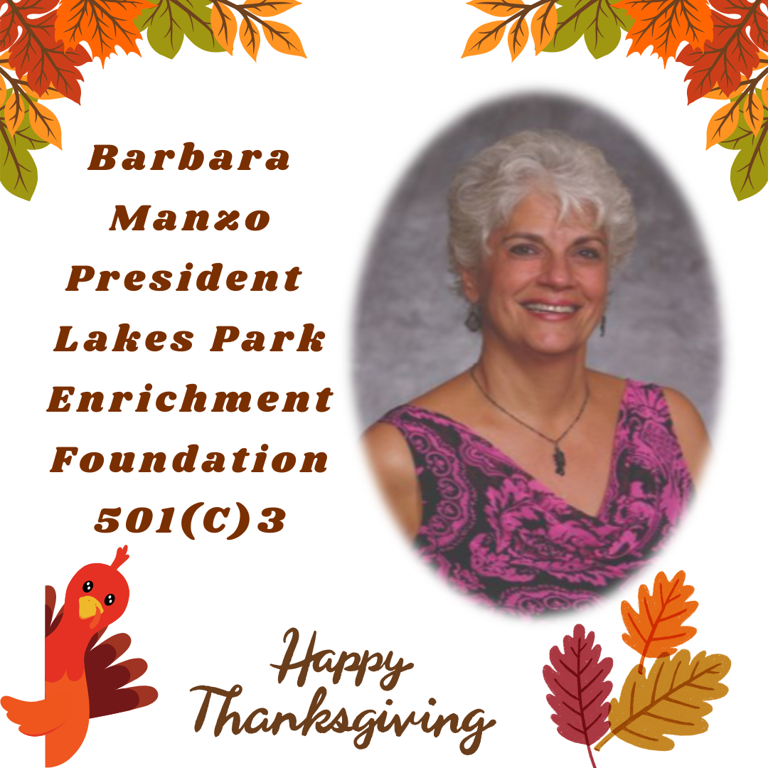“THE MISSION of Lakes Park Enrichment Foundation is to enhance the beauty and experience of Lakes Park.”— Barbara Manzo, President.